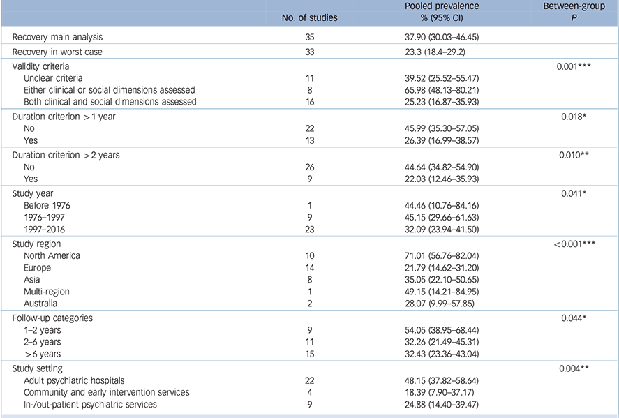 Table 3 Meta-analysis results of recovery in patients with first-episode psychosis