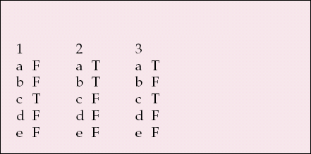 | b | F | b | T | b | F |