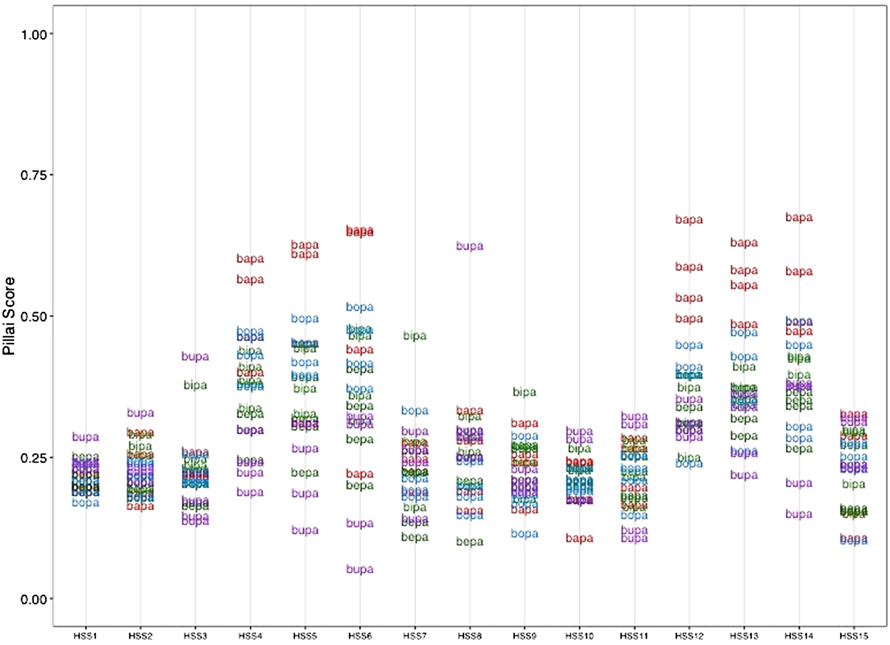 Finally, it is important to note that the results obtained here hold for this particular group of speakers. Different speakers, with different dominance and proficiency trajectories will exhibit distinct patterns of shared and unique variance across factors. If instead of looking at sequential bilinguals we had examined simultaneous bilinguals, the variability in Pillai scores may have decreased, given the more uniform and earlier age of acquisition for both languages. The goal of this investigation is to highlight precisely this fact. Each of the heritage speaker’s languages develops under different conditions and variability across heritage speaker phonetic productions is to be expected.