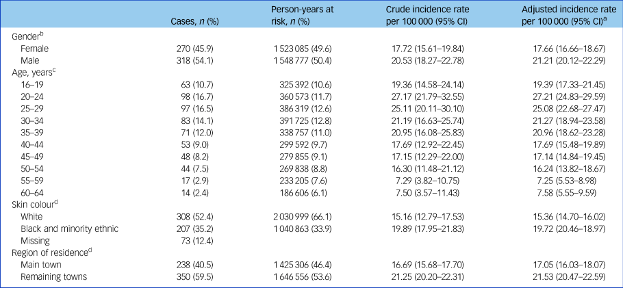 Table 2 Incident rates of first-episode psychosis in the Ribeirão Preto catchment area, Brazil, according to demographic features (per 100 000 habitants)