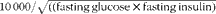 $$10\,000/\sqrt {((fasting\,glucose\times fasting\,insulin)} $$