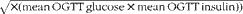 $$\sqrt {\times (mean\,OGTT\,glucose\times mean\,OGTT\,insulin))} $$