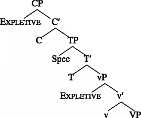 Since non-argumental and quasi-argumental expletives show different properties with respect to word order, Biberauer (Reference Biberauer, Biberauer, Holmberg, Roberts and Sheehan2010) claims that expletives in German can be merged either in Spec,CP (non-argumental es) or in Spec,vP (quasi-argumental es). Here, we will propose a similar analysis to account for transitive expletive constructions in V2 languages in general, and as far as the Scandinavian languages are concerned we will claim that expletives can merge in two different positions: either as a topic expletive in Spec,CP or as a subject expletive (non-argumental or quasi-argumental) in Spec,vP. In Icelandic, only the former position is possible, whereas in present-day Swedish, expletives can merge either in Spec,CP or in Spec,vP (although nowadays CP expletives are restricted by certain idiolectal factors):