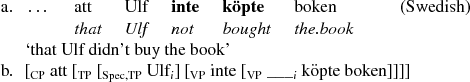 In the case of Swedish, the old subordinate clause word order with V°–T° movement is gradually replaced in Early Modern Swedish with the modern order without V°–T° movement. This development is shown in Table 1.