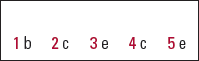| 1 | b | 2 | c | 3 | e | 4 | c | 5 | e |