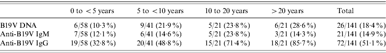 Table 3. Prevalence of parvovirus B19 DNA in patients with febrile exanthema who were IgM−/IgG+