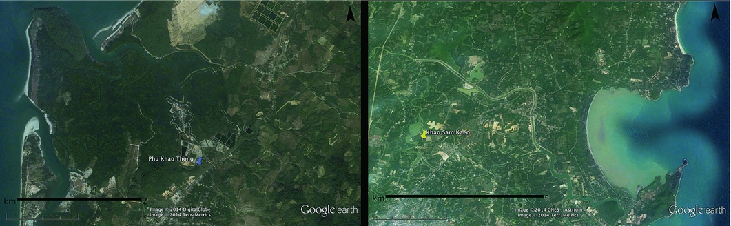 Figure 2. Google Earth images situating the sites KSK and PKT in the surrounding landscape.