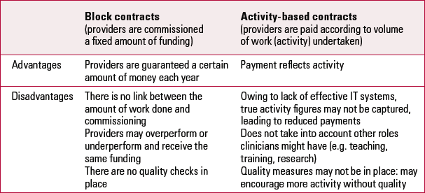 The Department of Health first outlined its plan for the implementation of activity-based funding in 2002 (Department of Health 2002). This was a radical move from previous ‘block contract’ arrangements where hospitals were given fixed amounts of money irrespective of their level of activity. Some of the advantages and disadvantages of the two systems are highlighted in Table 1.