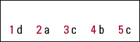 | 1 | d | 2 | a | 3 | c | 4 | b | 5 | c |