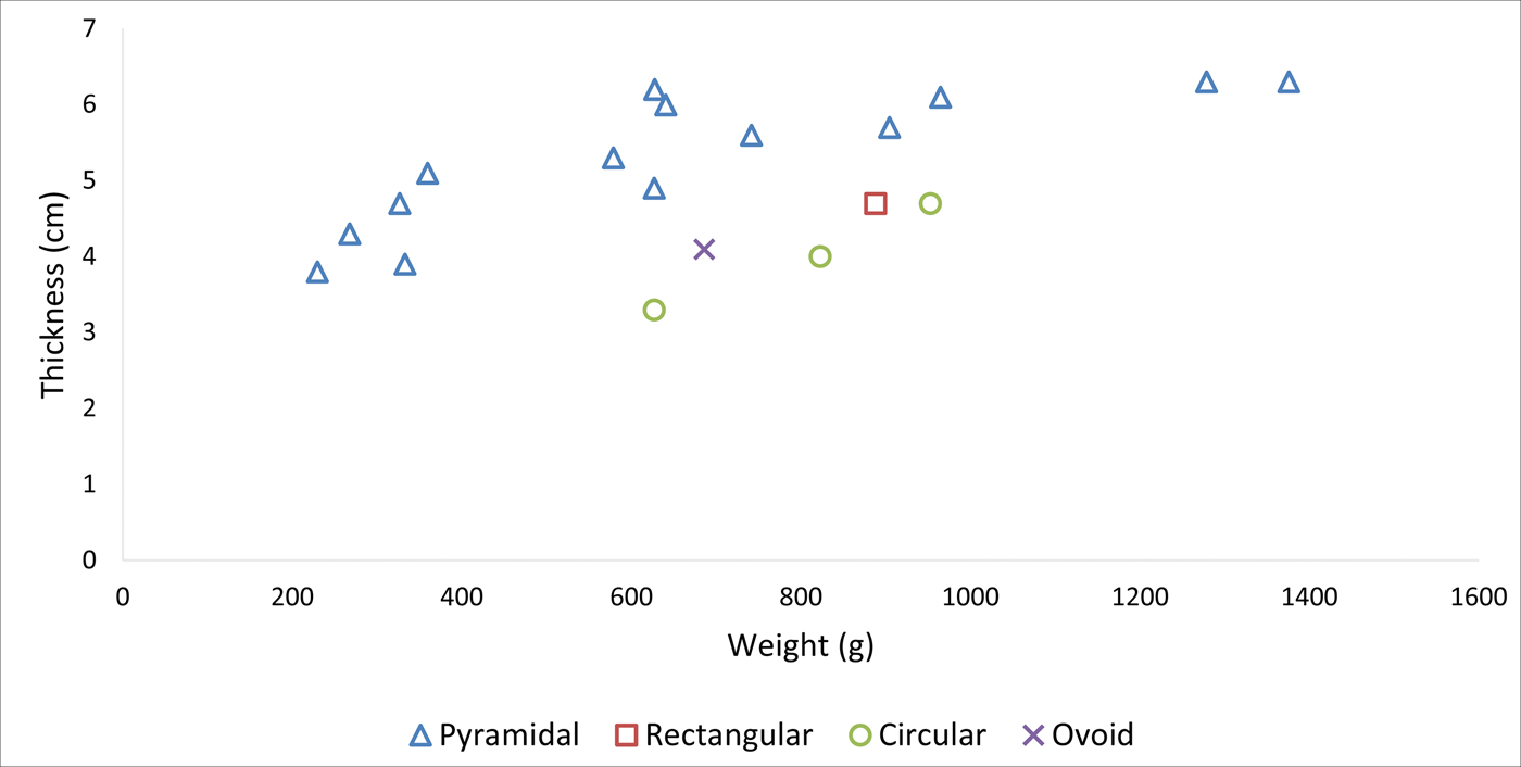 Figure 10. Scatter plot of loom weights from Casas del Turuñuelo (figure by B. Marín-Aguilera).
