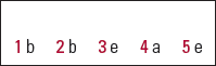 | 1 | b | 2 | b | 3 | e | 4 | a | 5 | e |