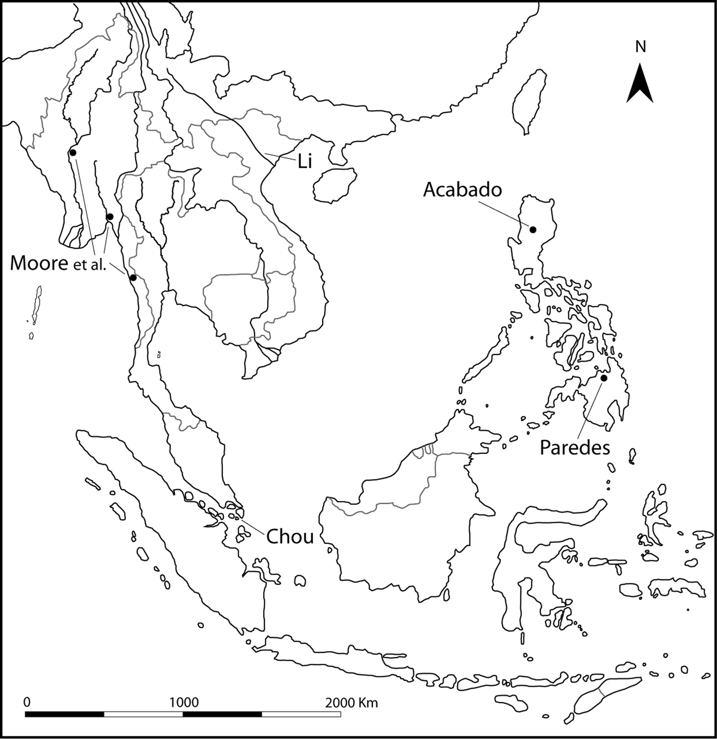 Figure 1. Map of Southeast Asia indicating the geographical focus of each article. (Illustration: L. Lloyd-Smith)