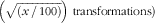 $\left( {\sqrt {\left( {x\,/\,{\rm 1}00} \right)} } \right)\ {\rm transformations})$