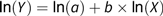 $${\ln \left( Y \right) = \ln \left( a \right) + b \times \ln \left( {\rm{X}} \right){\rm{\;}}}$$