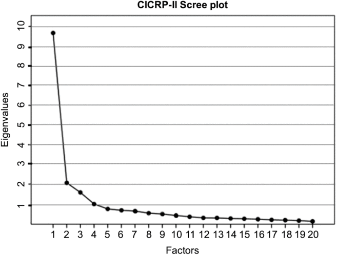 Fig. 1. Scree plot of the eigenvalues. Abbreviation: CICRP-II, Competency Index for Clinical Research Professionals, version II.
