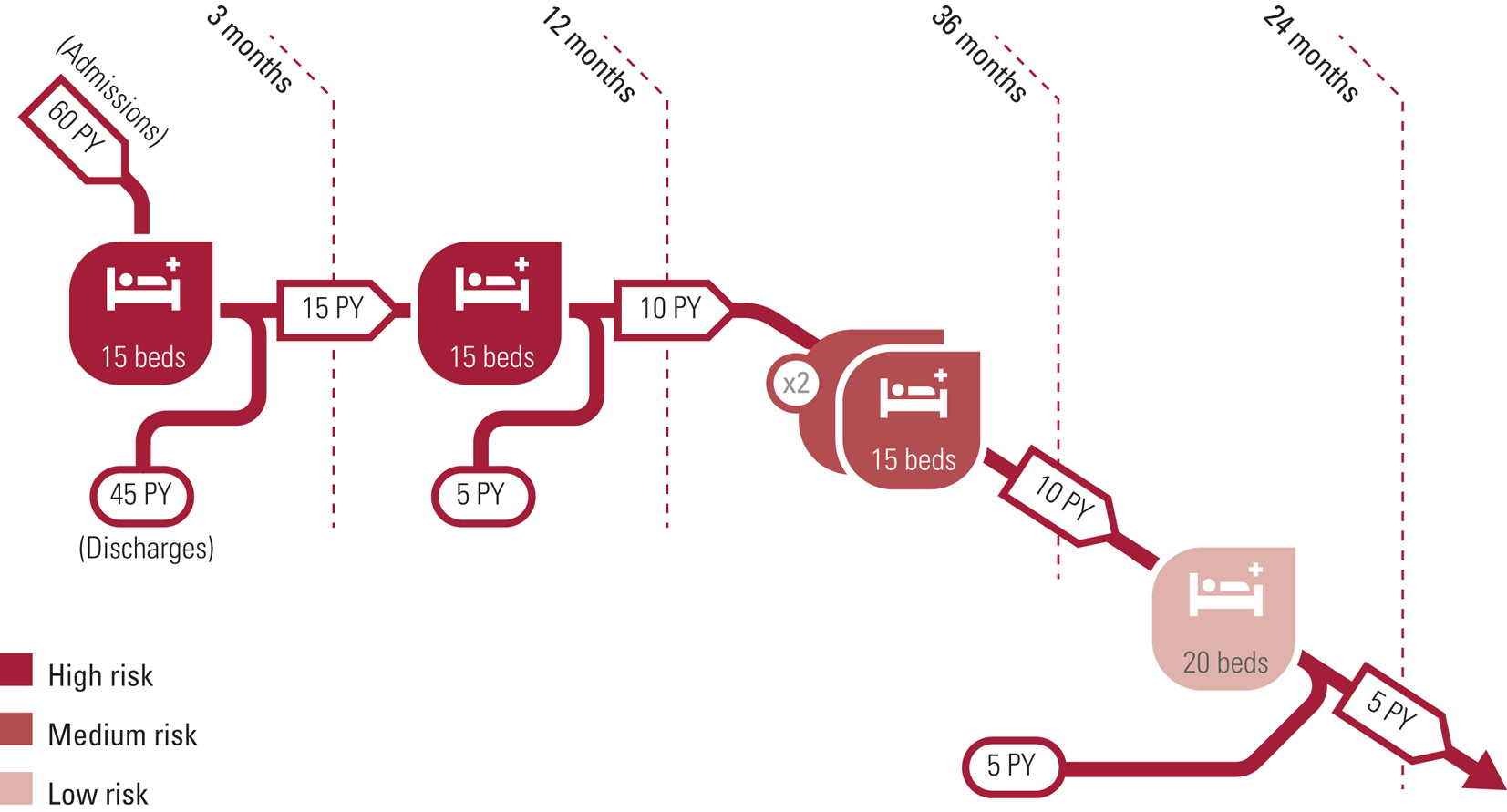 FIG 1 Stratified therapeutic security, the most common model of therapeutic security in secure forensic hospitals. PY, per year.
