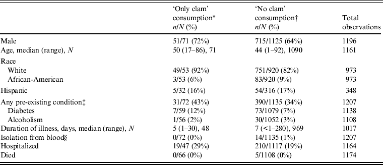 † Ill persons reported clam consumption and were not excluded if they reported consuming any additional seafood items.