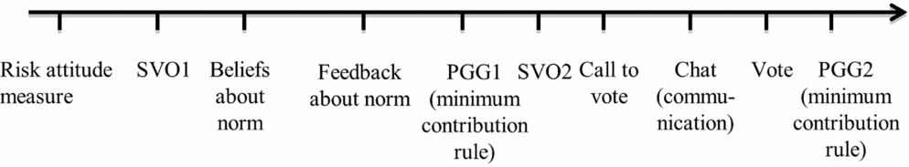 Participants are paid in cash privately at the end of each session. Earnings are in “points” and exchanged for euros at a rate of €1 per 100 points. Earned points consist of: a possible bonus for the norm measurement; one randomly determined choice for each of the SVO measures; points earned in PGG1 and PGG2; and (negative) points if they initiated a call to vote.