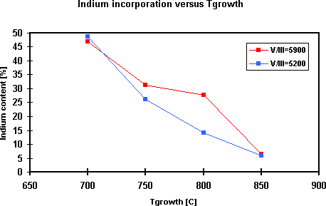 Figure 2. Indium incorporation versus growth temperature.