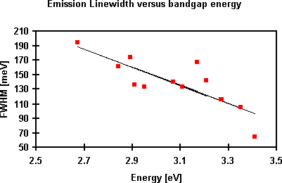 Figure 5. Emission linewidth of InGaN versus band gap energy.
