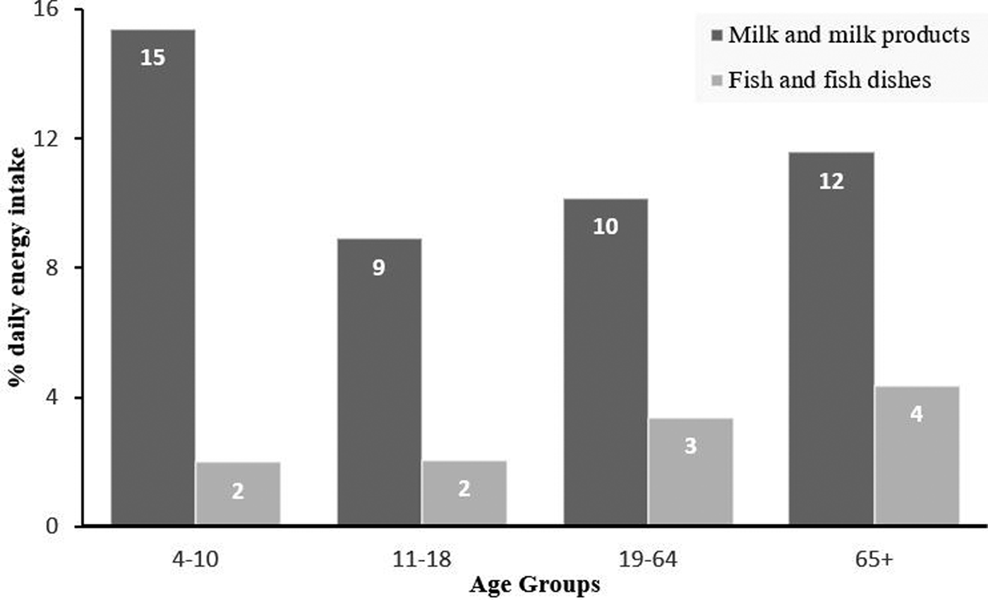 Fish is a rich natural source of dietary iodine, and it is the main contributor to the UK dietary iodine intake after dairy, contributing towards 11 % of the intake in non-pregnant adults(Reference Bates, Cox and Nicholson Polly Page15, Reference Henderson, Gregory and Swan20), and 24 % in pregnancy(Reference Combet, Bouga and Pan18).