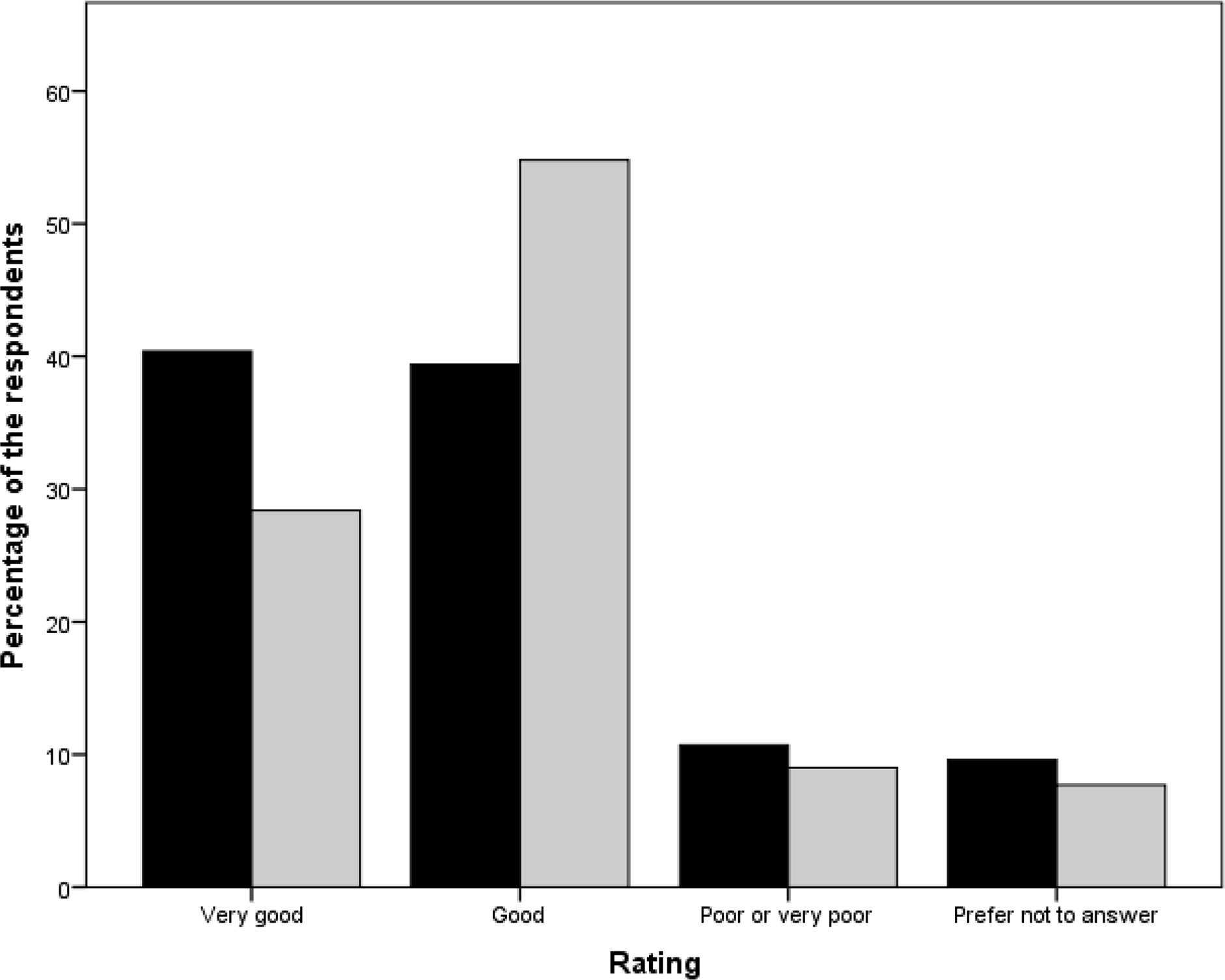Designated relatives and staff members were also asked to rate the conditions of the resident’s death in general, from very good to very poor, with the option of ticking I prefer not to answer. Distributions of ratings are shown in Figure 2. Approximately 80 per cent of relatives and staff members rated the conditions of death as good or very good, with staff respondents being somewhat more critical than relatives.