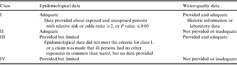 Table 2. Classification criteria for waterborne disease outbreaks [Reference Yoder9]