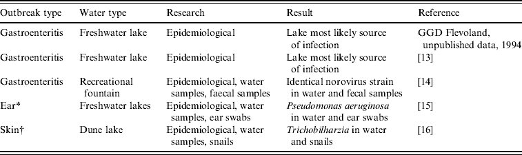 Table 3. Waterborne disease outbreaks associated with untreated recreational water reported in The Netherlands from 1991 to 2007