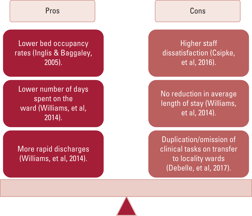 The Inglis, Williams and Csipke articles (Inglis Reference Inglis and Baggaley2005; Williams Reference Williams, Csipke and Rose2014; Csipke Reference Csipke, Williams and Rose2016) suggest that at the very least, the triage model is not inferior to the traditional in-patient system. Moreover, improved rates of bed occupancy in the triage system should not be understated, particularly as they would be expected to lead to more rapid transfer of acutely unwell patients from emergency departments to mental health in-patient units. This should reduce the need for trusts to outsource acute care to private hospitals, which can vary significantly in terms of their proximity to the patient's catchment area and also in the quality of care offered. Attempting to contain acutely disturbed patients in busy emergency departments while they await an in-patient bed is challenging and not uncommon (The Strategy Unit 2019). It is known that ʻboarding' of patients in emergency departments has been shown to lead to crowding, poor patient experience, lower quality of care, delays in treatment, increased morbidity and mortality, and lost revenue (Pearlmutter Reference Pearlmutter, Dwyer and Burke2017).