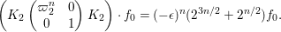 $$\begin{eqnarray}\left(K_{2}\left(\begin{array}{@{}cc@{}}{\it\varpi}_{2}^{n} & 0\\ 0 & 1\end{array}\right)K_{2}\right)\cdot f_{0}=(-{\it\epsilon})^{n}(2^{3n/2}+2^{n/2})f_{0}.\end{eqnarray}$$We thereby have a divergent integral