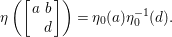 $$\begin{eqnarray}{\it\eta}\left(\left[\begin{array}{@{}cc@{}}a & b\\ & d\end{array}\right]\right)={\it\eta}_{0}(a){\it\eta}_{0}^{-1}(d).\end{eqnarray}$$ Here,