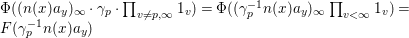$\mathbb{A}:=\otimes _{v\leqslant \infty }^{\prime }F_{v}$ be the ring of adeles for