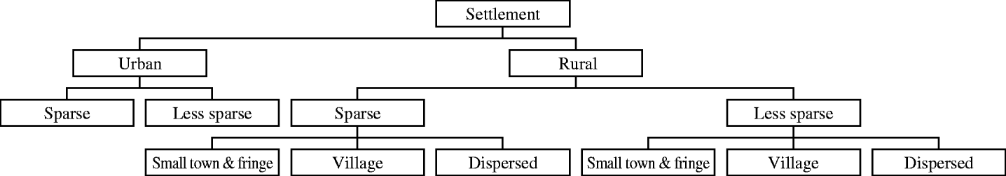 Internationally there is some debate regarding the most appropriate classification of rural and urban residence [Reference Hall, Kaufman and Ricketts14]. The ONS classification which uses the size of settlements to classify areas was selected for this study because it is widely used, readily available, and applicable to the United Kingdom.