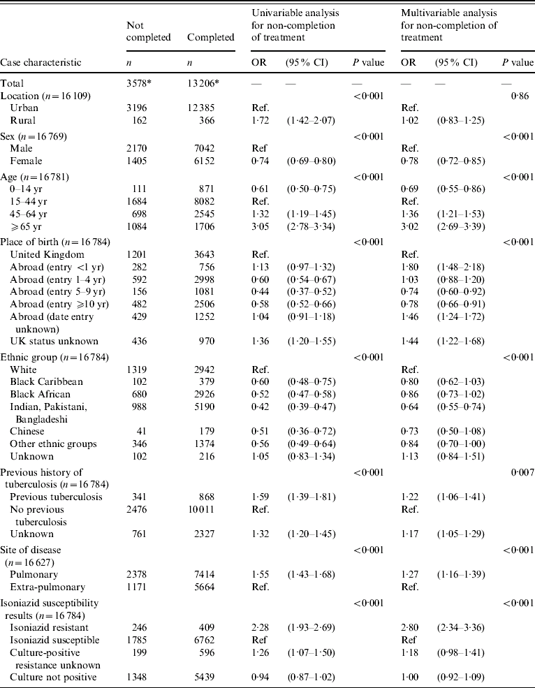 Table 1. Determinants of non-completion of treatment in cases reported in England and Wales in 2001–2003