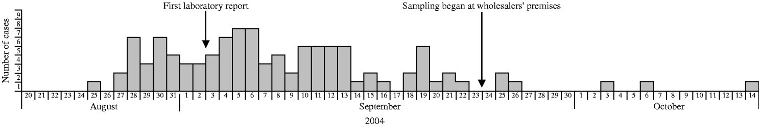 An urgent enquiry was sent to participants of the international surveillance network Enternet [Reference Fisher14] on 8 September 2004 informing them of the increase and requesting additional information from any countries that were experiencing a similar increase in S. Newport infection.