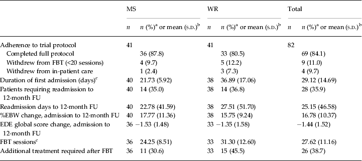 MS, Medical stabilization; WR, weight restoration; FBT, family-based treatment; FU, follow-up; %EBW, percentage expected body weight; EDE, Eating Disorder Examination; s.d., standard deviation.