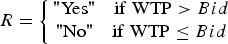 where R denotes the response, WTP is willingness to pay and Bid is the stated conservation fee posed in the question asking about the visitors’ willingness to pay.
