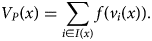 $$V_P( x ) = \mathop \sum \limits_{i\in I( x ) } f( v_i( x ) ) .$$