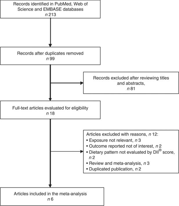 Fig. 1 Flow diagram of the study selection process for current meta-analysis on the association between the inflammatory potential of diet and depression