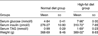 * Mean values were significantly different from those of the normal diet group (P < 0·05).