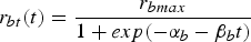 $r_{bt}\lpar t\rpar = {r_{bmax} \over 1+exp\lpar -\alpha_{b}-\beta_{b}t\rpar }$