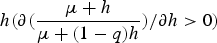 $h \lpar \partial \lpar {\mu +h \over \mu + \lpar 1 - q\rpar h}\rpar /\partial h \gt 0\rpar $
