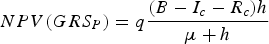 $NPV\lpar GRS_{P}\rpar = q{\lpar B-I_{c}-R_{c}\rpar h \over \mu+h}$