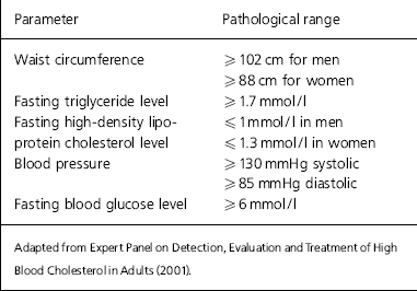 For the purposes of calculating the prevalence of metabolic syndrome in this audit, the National Cholesterol Education Program Adult Treatment Panel III guidelines (Expert Panel on Detection, Evaluation and Treatment of High Blood Cholesterol in Adults, 2001) were used (Table 1). The presence of three out of the five measurements in Table 1 is necessary to identify the syndrome.