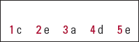 | 1 | c | 2 | e | 3 | a | 4 | d | 5 | e |