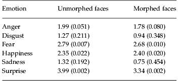 Table 3. Statistics on individual emotions for comparison of patients and controls
