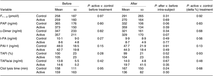 Table 3. Haemostatic variables at baseline and after the 3-month supplementation with active mixture or control*