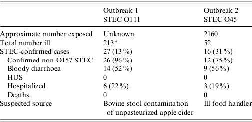 Table 1. Epidemiological characteristics of STEC outbreaks