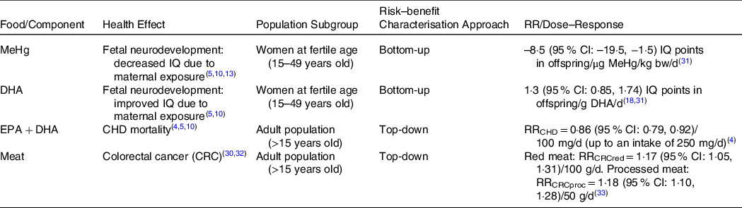 Table 2. Health effects associated with the selected foods and components and data inputs for the risk–benefit assessment