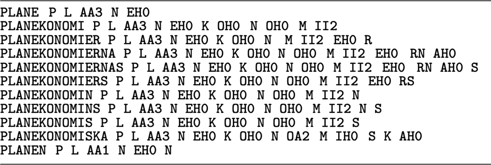 The larger project for which this Swedish adaptation was built required a comprehensive dictionary (Young Reference Young2019), and two resources were particularly suitable for adaptation to the FAVE-Align format: Folkets Lexikon and the NTS pronunciation dictionary. These would not have been necessary for an experimental project that used, for example, a limited number of read-aloud sentences (e.g. Chodroff & Wilson Reference Chodroff and Wilson2017). Nonetheless, we have decided to dedicate some space here to the procurement of our dictionary because, as argued in Section 2.3, 75% of the time saved in automatic transcription comes from having a pronunciation dictionary that is both comprehensive and accurate. Furthermore, the NTS pronunciation dictionary is also publicly available for Danish and Eastern Norwegian (‘bokmål’), so our adaptation can serve as a guideline for those who wish to duplicate SweFA for these varieties.
